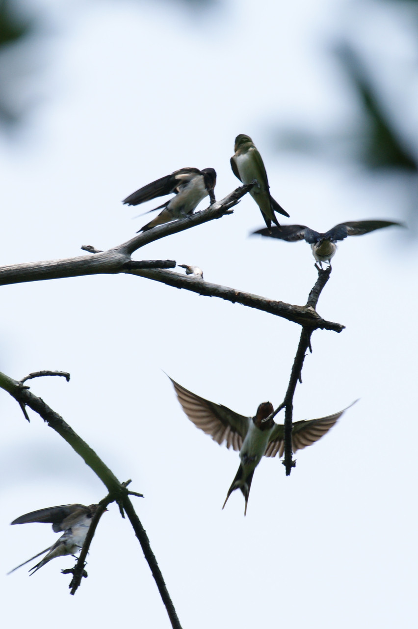 まだ親鳥(飛んでいるツバメ)が餌を運んでいます。