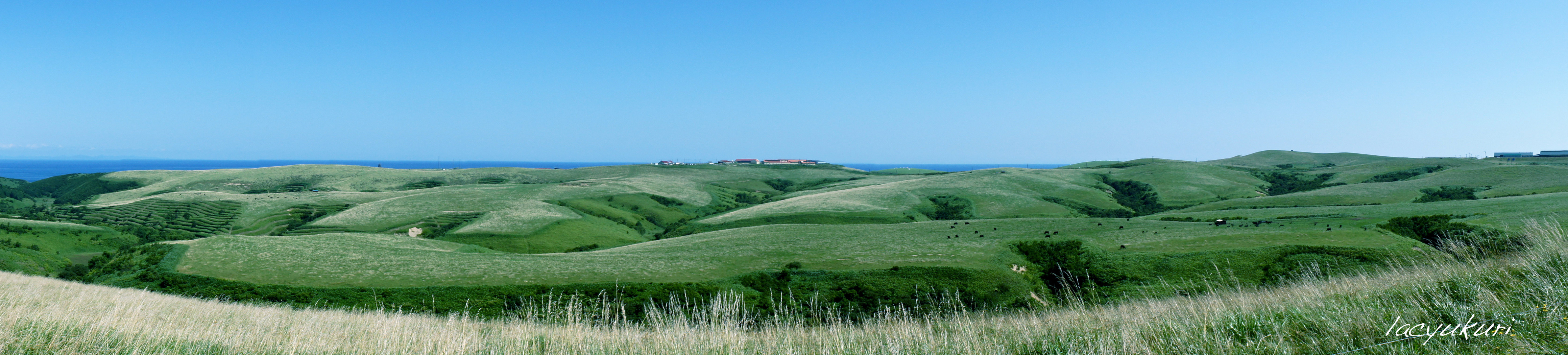 どこまでも続く丘陵。丘陵の向こうには海が広がる。短い夏を大地が謳歌しているようだ。