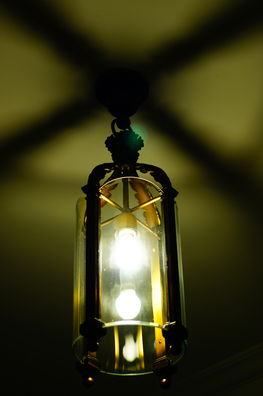 初めて見学した明治生命館 クラッシックなライトに、天井に映った影を撮ってみました
