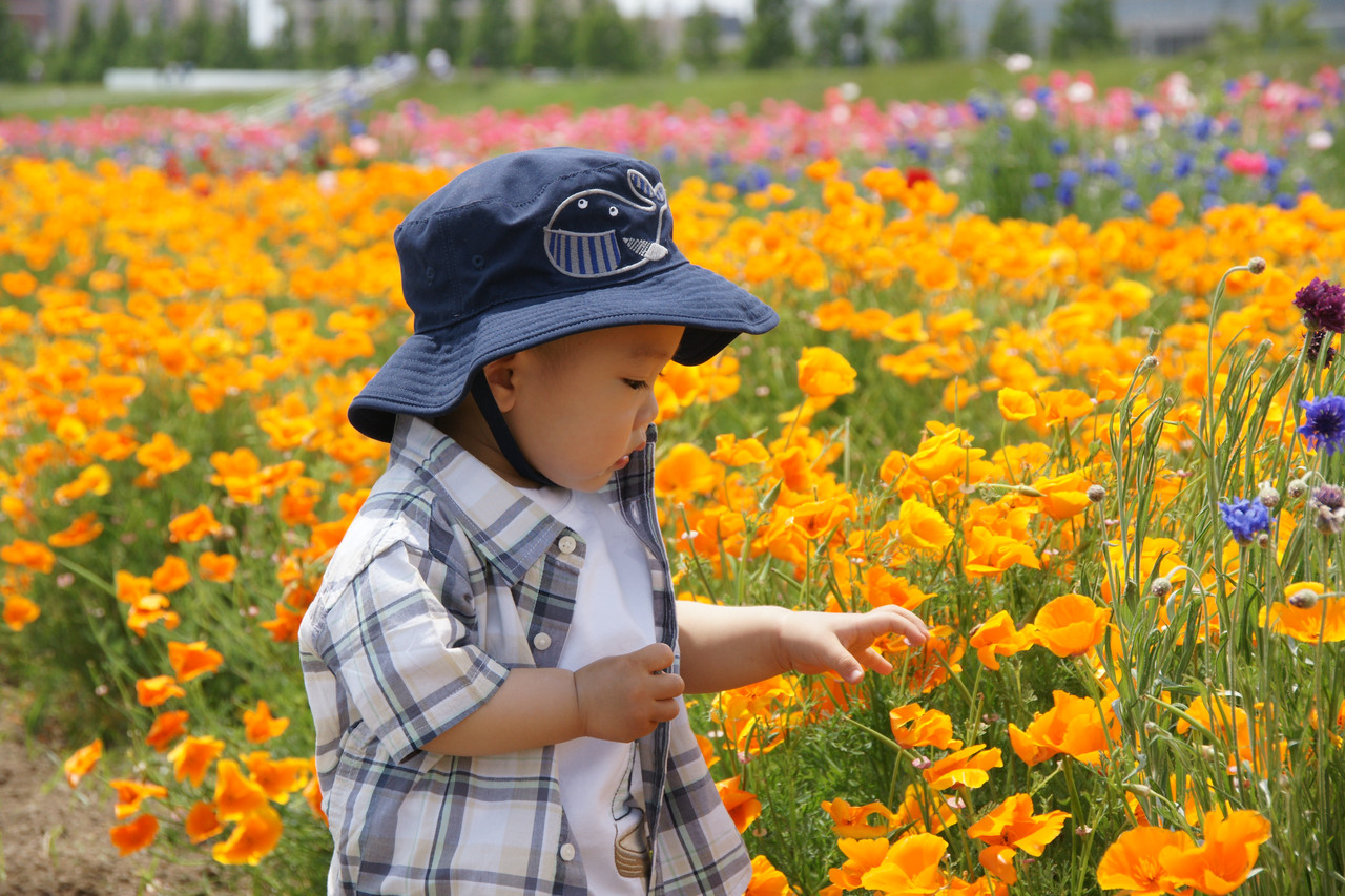 1歳を向かえ上手に歩けるようになった息子。 好奇心旺盛な彼は、風にゆらゆら揺れるお花にまっしぐら。 初めて触るお花の感触はどんなかな???