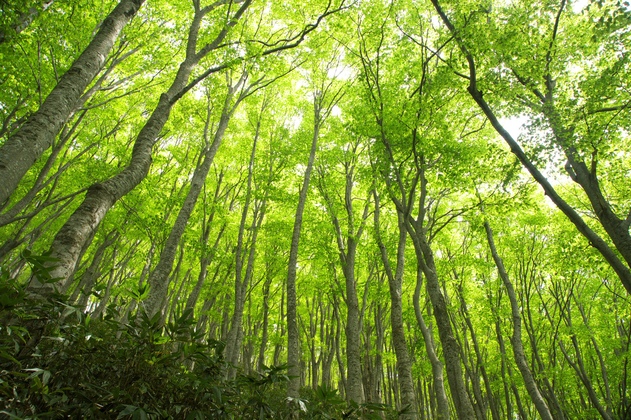 雪がまだ残る八甲田のブナの森です。 この後、毛無岱に向かう手前で、クマが目の前を藪の中に走り去りました(>_<)