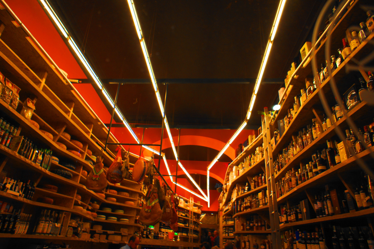 プラハのチーズ+ハム+酒屋さんにはいったところ 天井の蛍光灯が面白かったので。