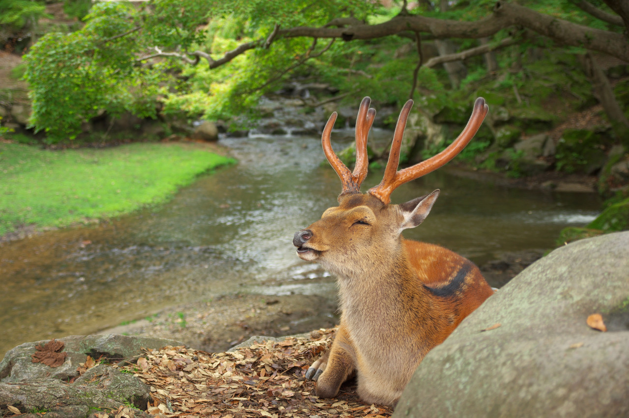 奈良公園の鹿が気持よさそうにお昼寝してました