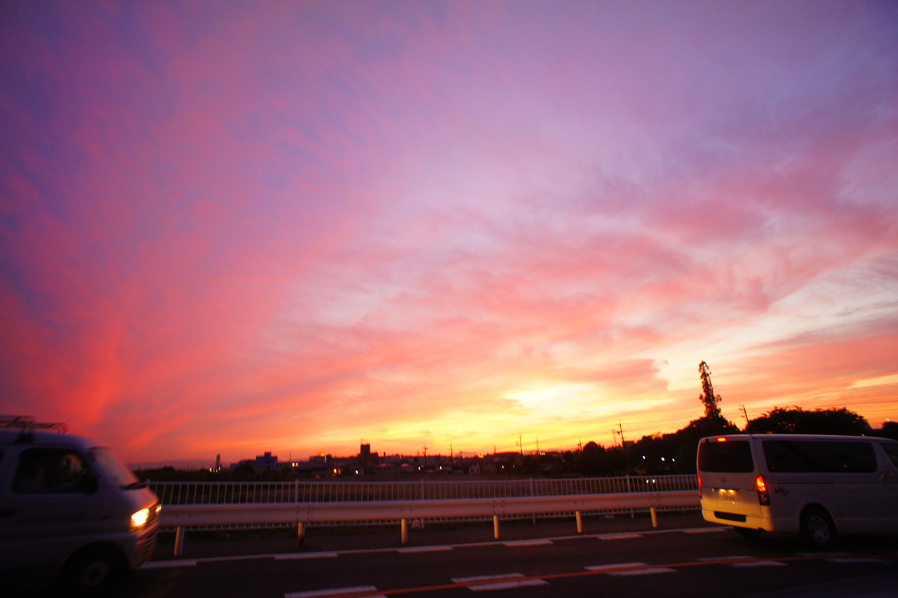 こんな夕焼け!はじめてみました! 今日は休みで良かったです! でも、不思議です! 普通の太陽がなぜ、昇る時、沈む時に、こんなに動乱するのでしょうか! それとも地平線が怒っているのかな~~!