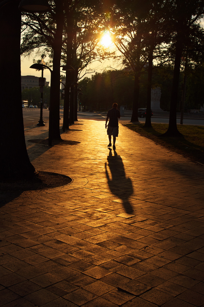 目の前に肩を落としてトボトボと歩く男性に夕日がなんとも切なくマッチしていました。