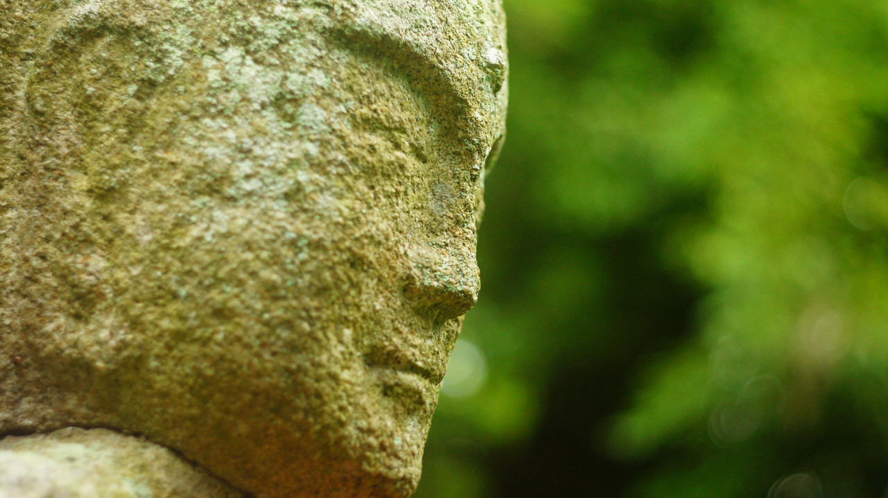 イケメン地蔵様の目、鼻、口、あごの線のりりしさ。
