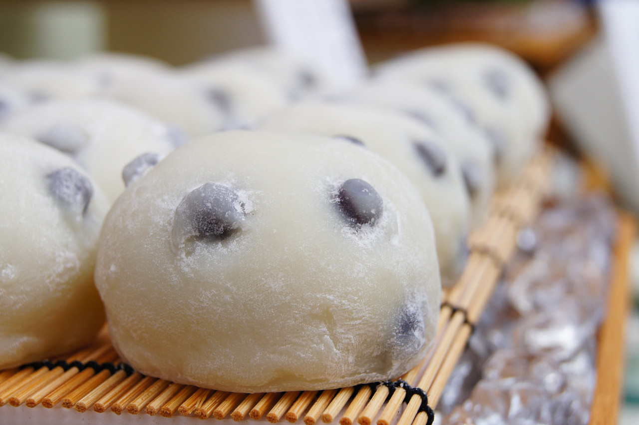 和菓子屋さんの店先に並ぶ、むき出しの豆大福。 これ、実は作り物です。指でつついて確認しました^^;