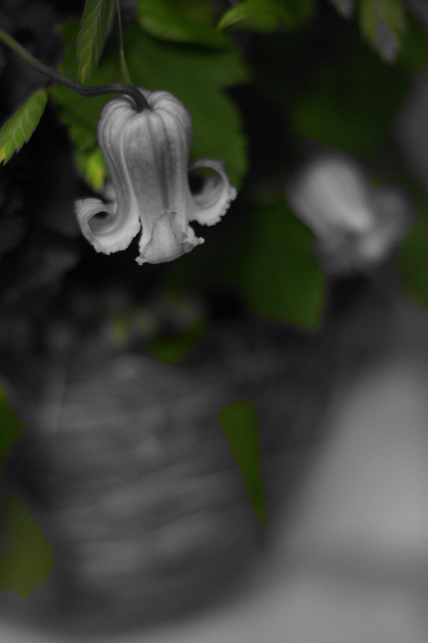 ピクチャーエフェクト機能のパートカラー(グリーン)を使ってクレマチスを撮りました。鐘のような形をしたクレマチスが可憐です♪