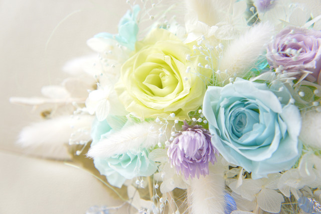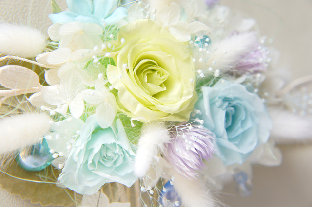 祖母へのプレゼント、薔薇のプリザーブドフラワーです なめらかで柔らかい色調、こんな薔薇も美しいですね