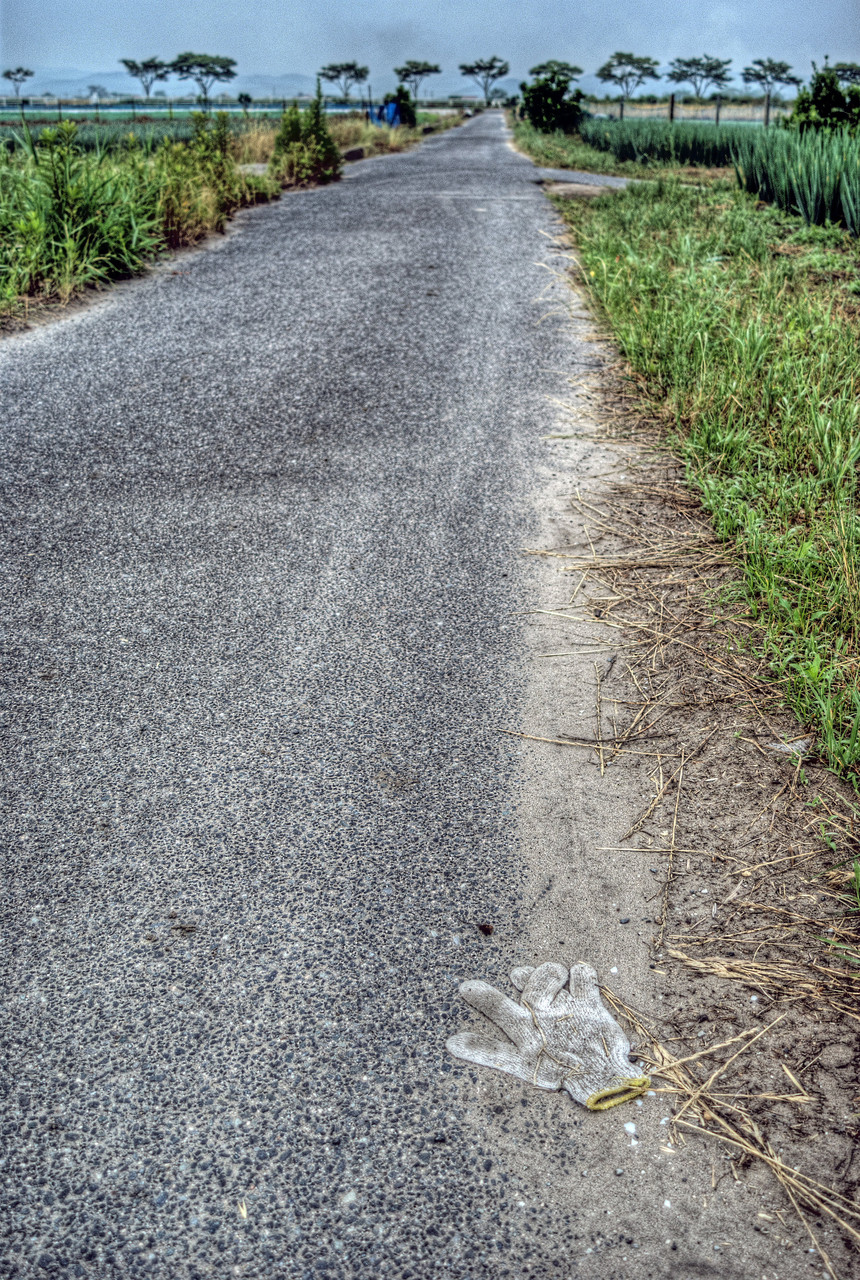 田舎ならではの光景で、所々に軍手が落ちています。