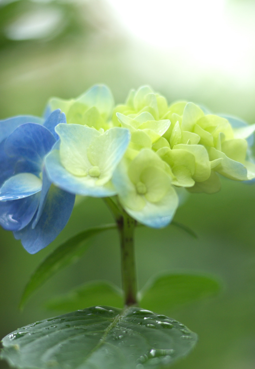 「早起きは三文の徳」と言いますが、お寺の開門と同時に入ったおかげで、まだ昨晩の雨にしっとり濡れたアジサイを撮ることができました。
