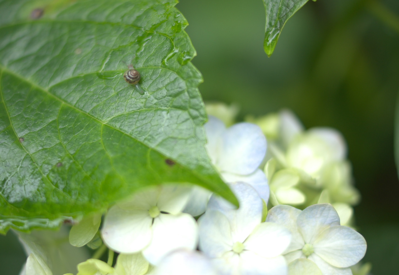カタツムリを見つけました。久し振り。あっちへうろうろ、こっちへうろうろ。こんなに小さかったんでしたっけ?