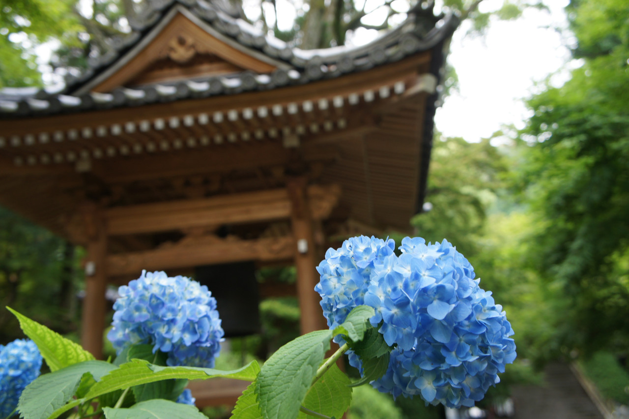 つつじ寺で有名な大興善寺山門鐘付き堂 前の紫陽花です