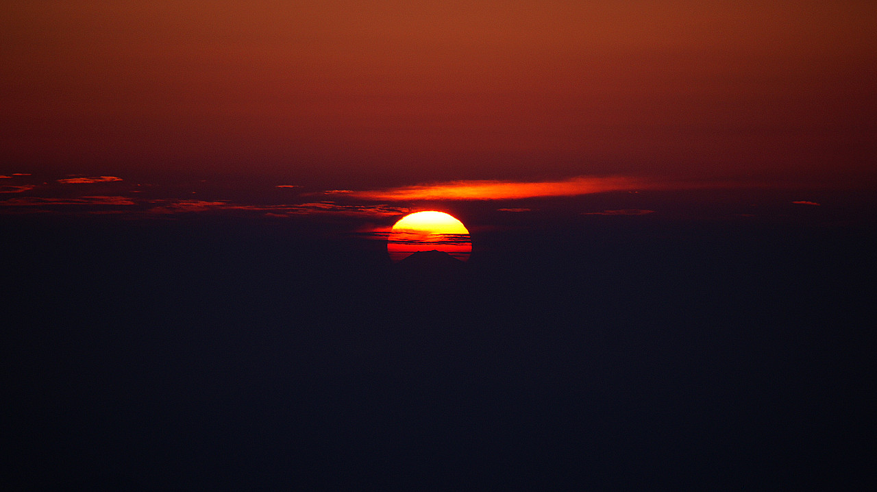 6/29大台ヶ原より撮影したダイヤモンド富士 直線距離にして約270km先の富士山遠望です。 もう少し綺麗なシルエットが浮かべばよかったのですが、 剣ヶ峰もわかるくらいの精度で撮れたので満足です。