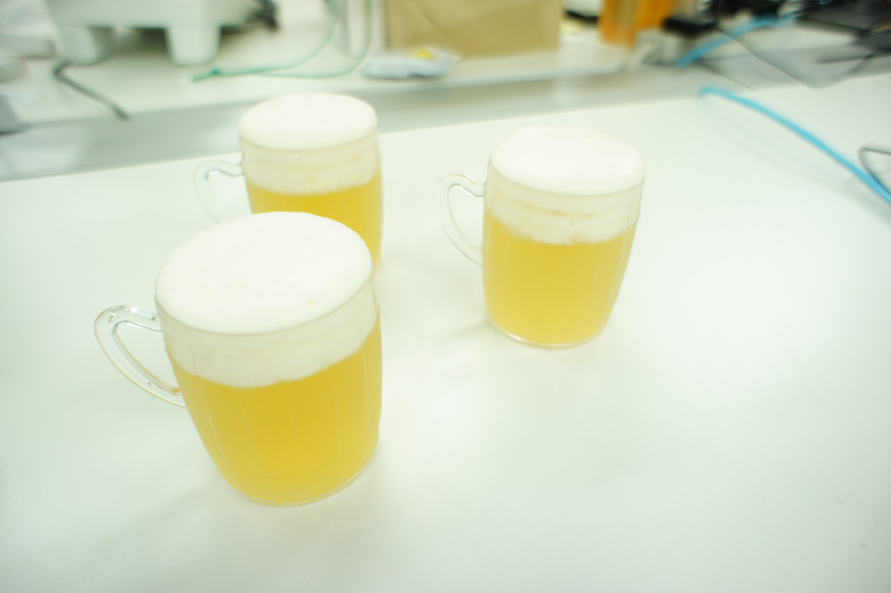 その名の通り、ビールの味がしました。 泡を作るのが相当難しかったらしいです^^ 逆さにしてもこぼれないビール(笑