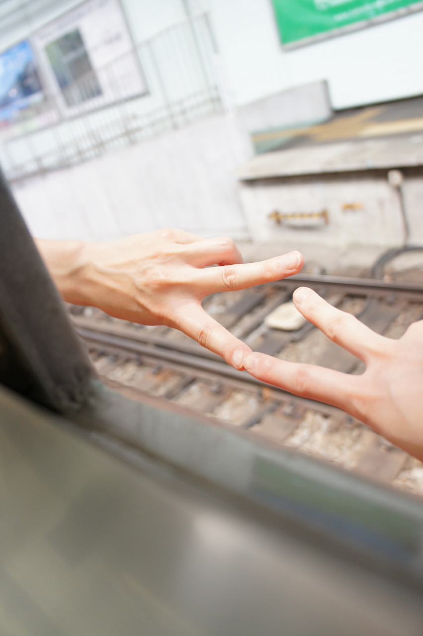 箱根登山電車の窓からのピース。 旅も、もうすぐ終了・・・。