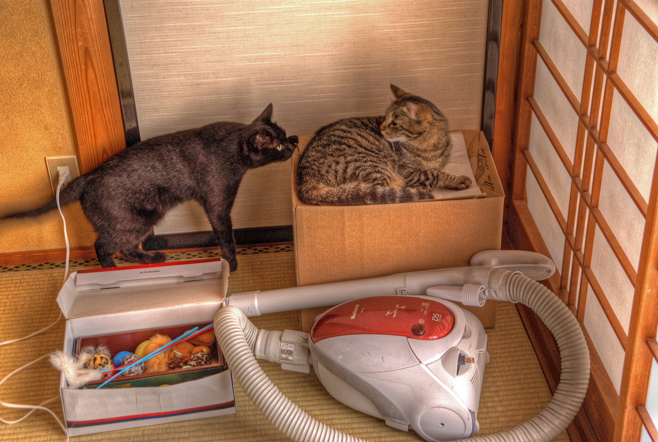 左の黒猫のほうが強いです。