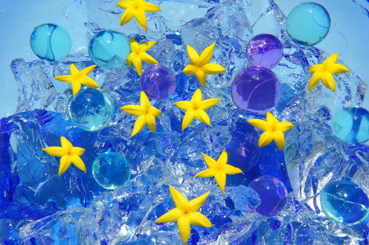 分厚い雲で(今年も)星空が見えませんが、 七夕なので宇宙をイメージした一枚を 碧い宇宙に浮かぶ星々… あれ…海中の黄色いヒトデに見えてきた…
