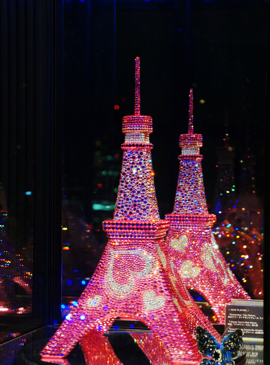 東京タワーの模型をガラス越しに2塔にアレンジ