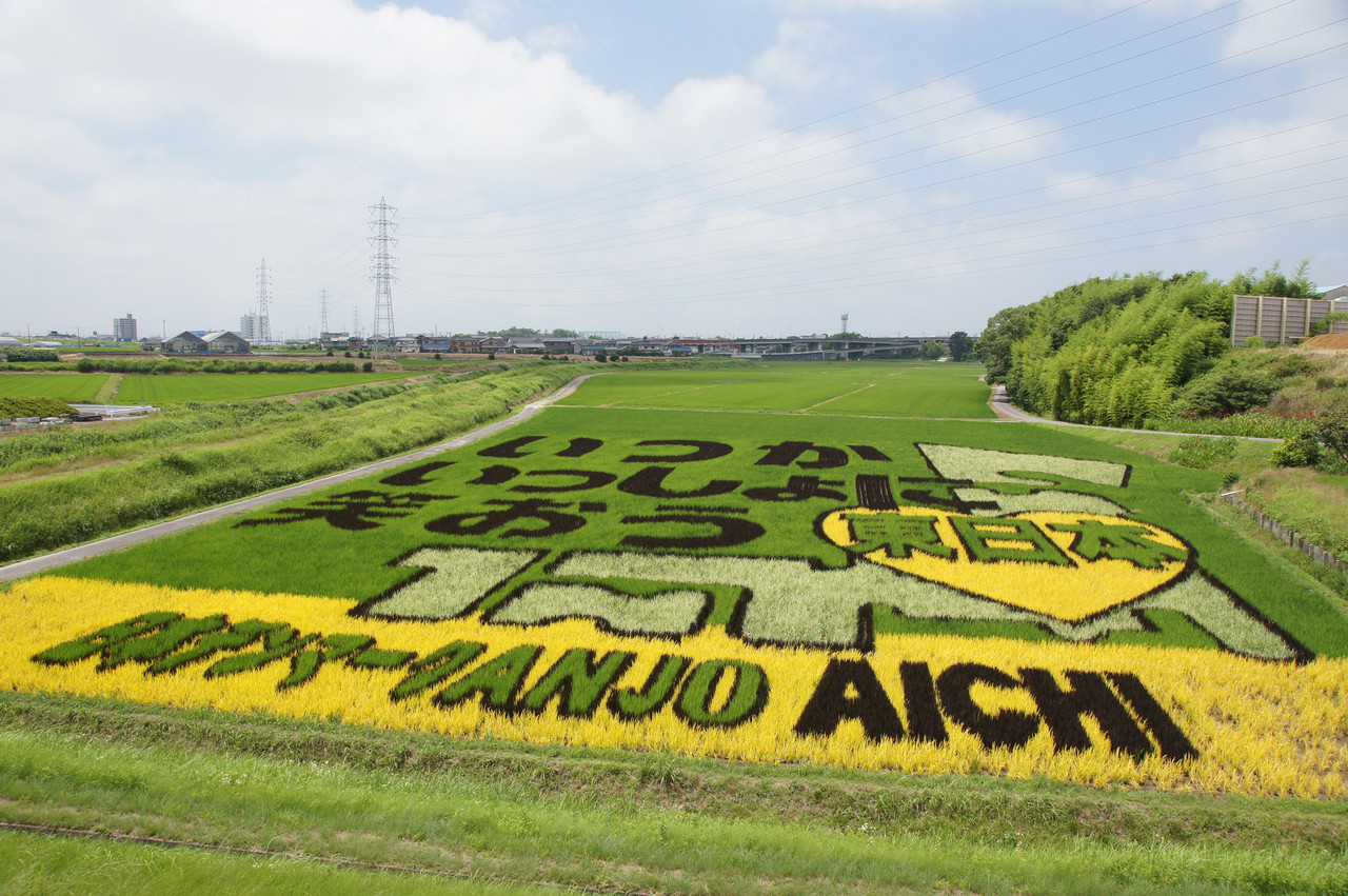 田んぼアートでのメッセージです♪ 「いつかいっしょに笑おう♡東日本」 こちらは愛知県安城市で作られた田んぼアートです!