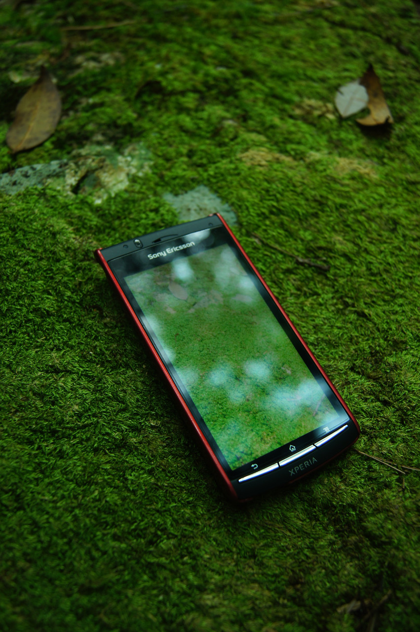 まず携帯で苔の写真を撮って そのまま被写体の上に・・・ 反射を抑えるためにC-PL使いました。