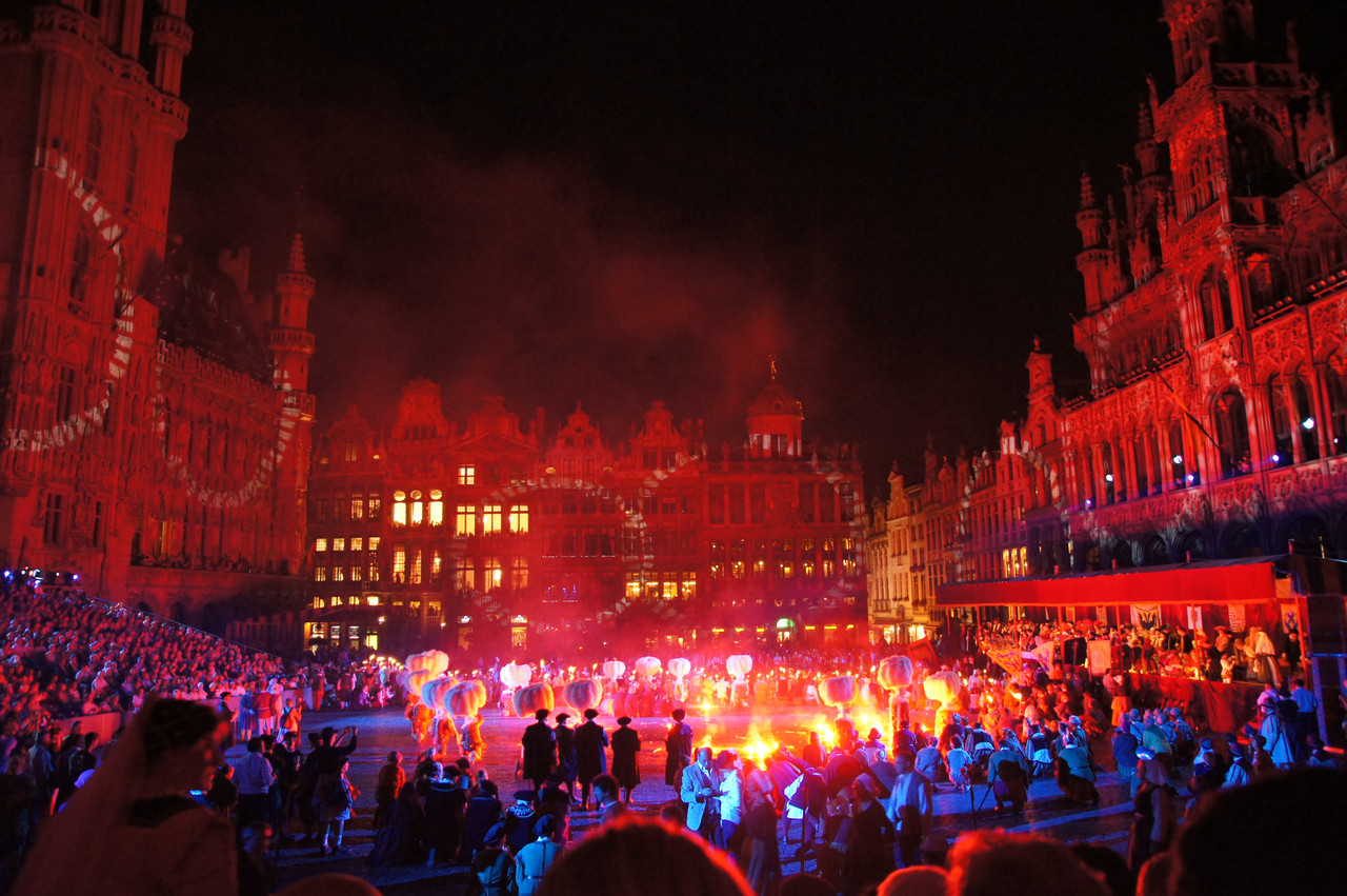 BrusselsのGrandPlaceで行われるお祭り Ommegangのフィナーレです。Ommegangには輪になって歩くという意味があるそうです。SAL1680Z 広角側で撮りました。