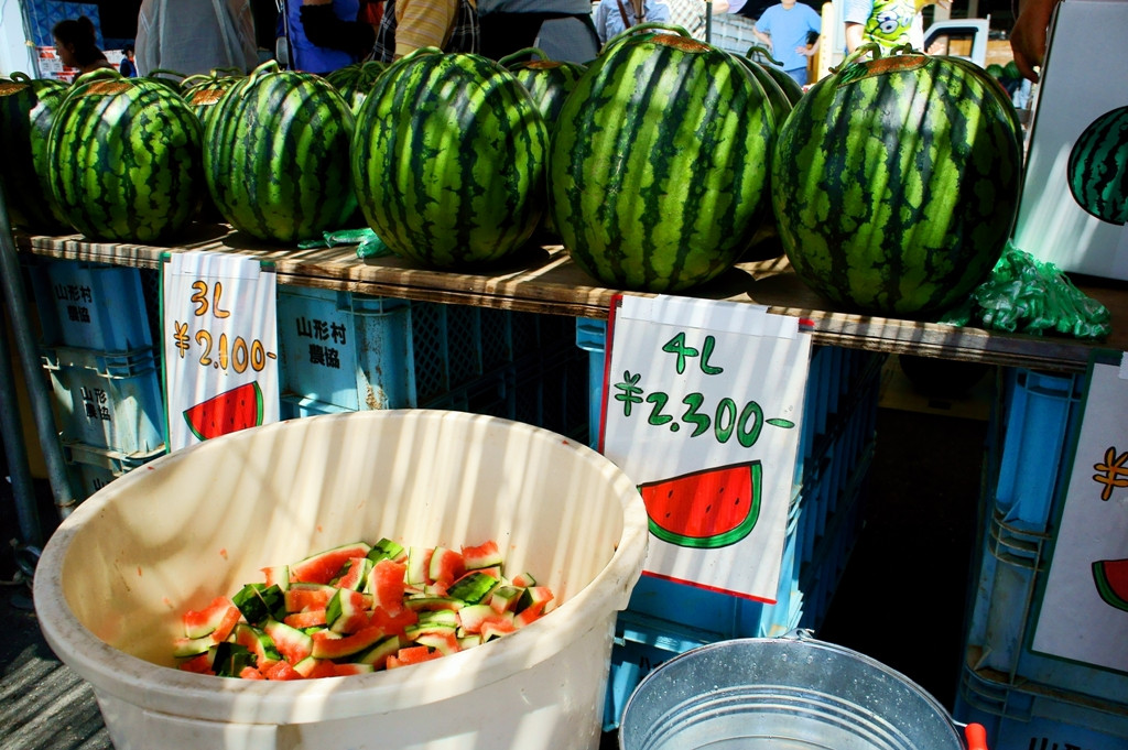 スイカ祭りで試食し放題。波田のスイカはブランド西瓜、ホントに美味しいです。