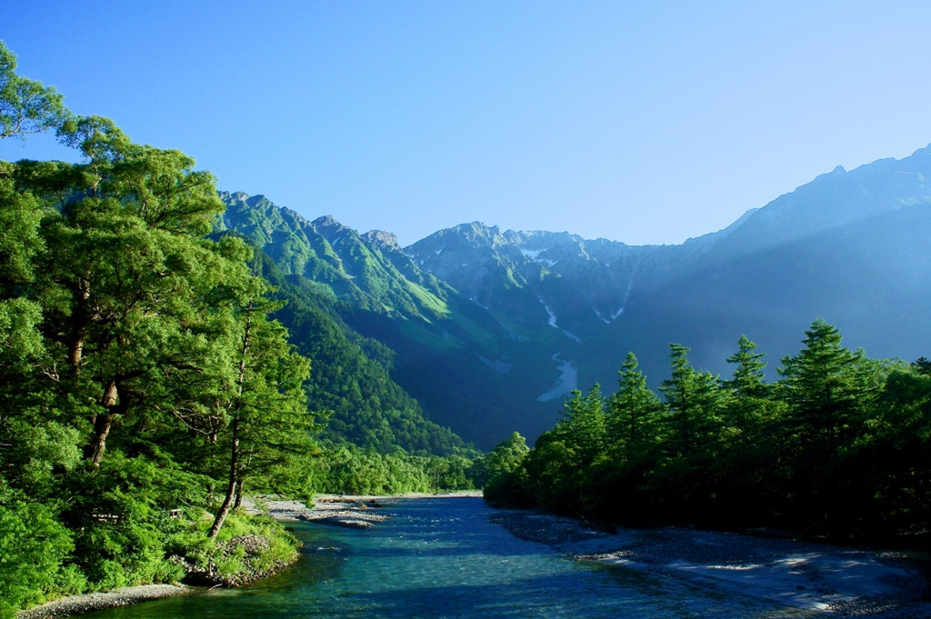 朝靄立ち上る上高地に到着。