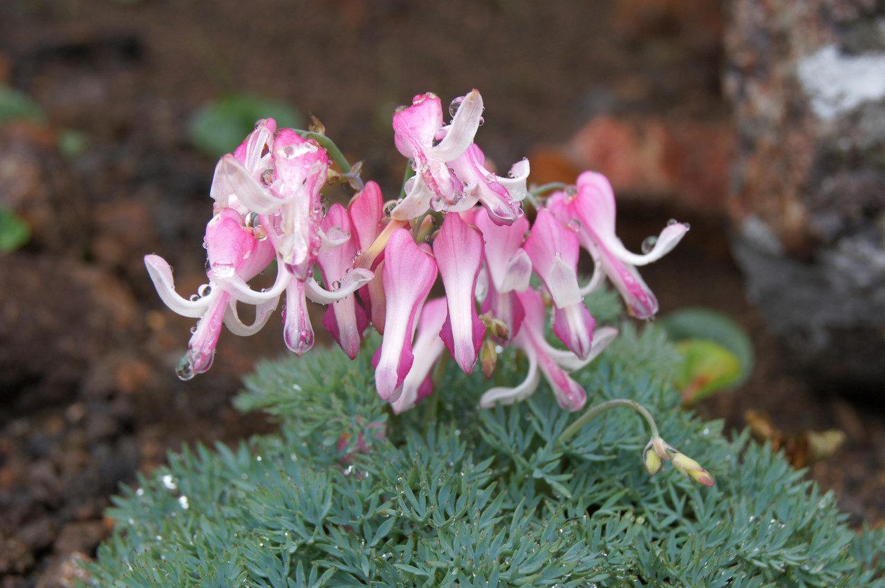 たくさんの花を付けた株です。黒い砂礫地の中で目立ちます。