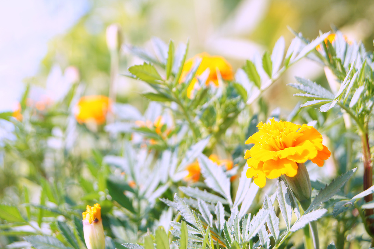 散歩中の道端に花壇があり、雑草が覆い茂る中に元気に咲いている花がありました。