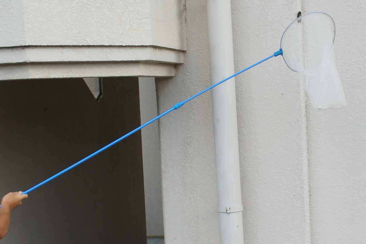 子供の蝉取りです。 臆病者なので、おそるおそる・・・