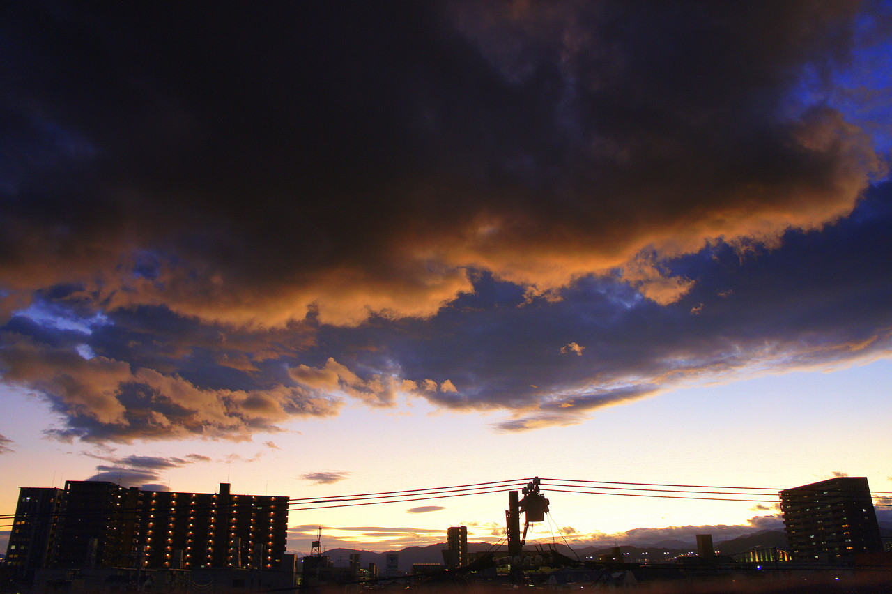 ゆっくり速度の嵐です。 じわじわと分厚い雲と、重たい風が街にやってきました。 この時は、ドキドキわくわくしましたが、 ニュースで、この嵐で被害に遭われた方が大勢出たので、大人げなかったと反省しました。