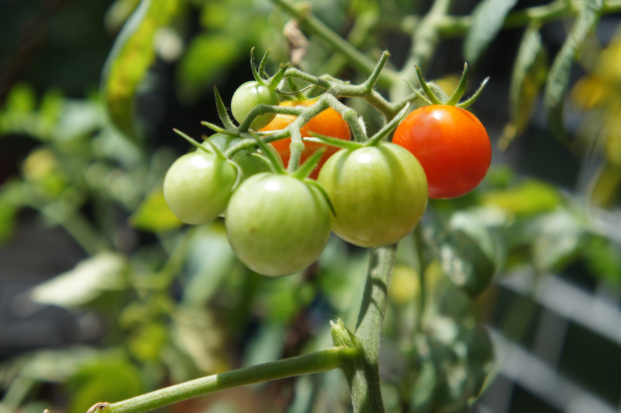 息子が大好きなトマトを育ててます 赤く(オレンジ色?)なるとすぐに息子に食べられちゃいます^^; 60円くらいで買った苗なのにめちゃくちゃ大きく成長してくれました