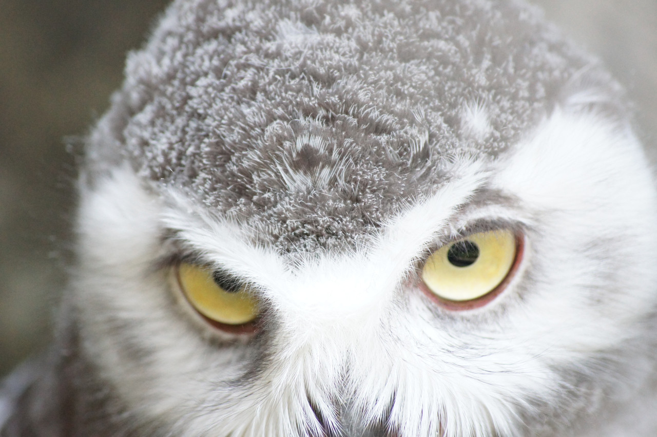 まだまだ子供のふくろうでしたが、カメラを向けると、きっと睨んで(?)きました。 目が・・・とてもきれいです。