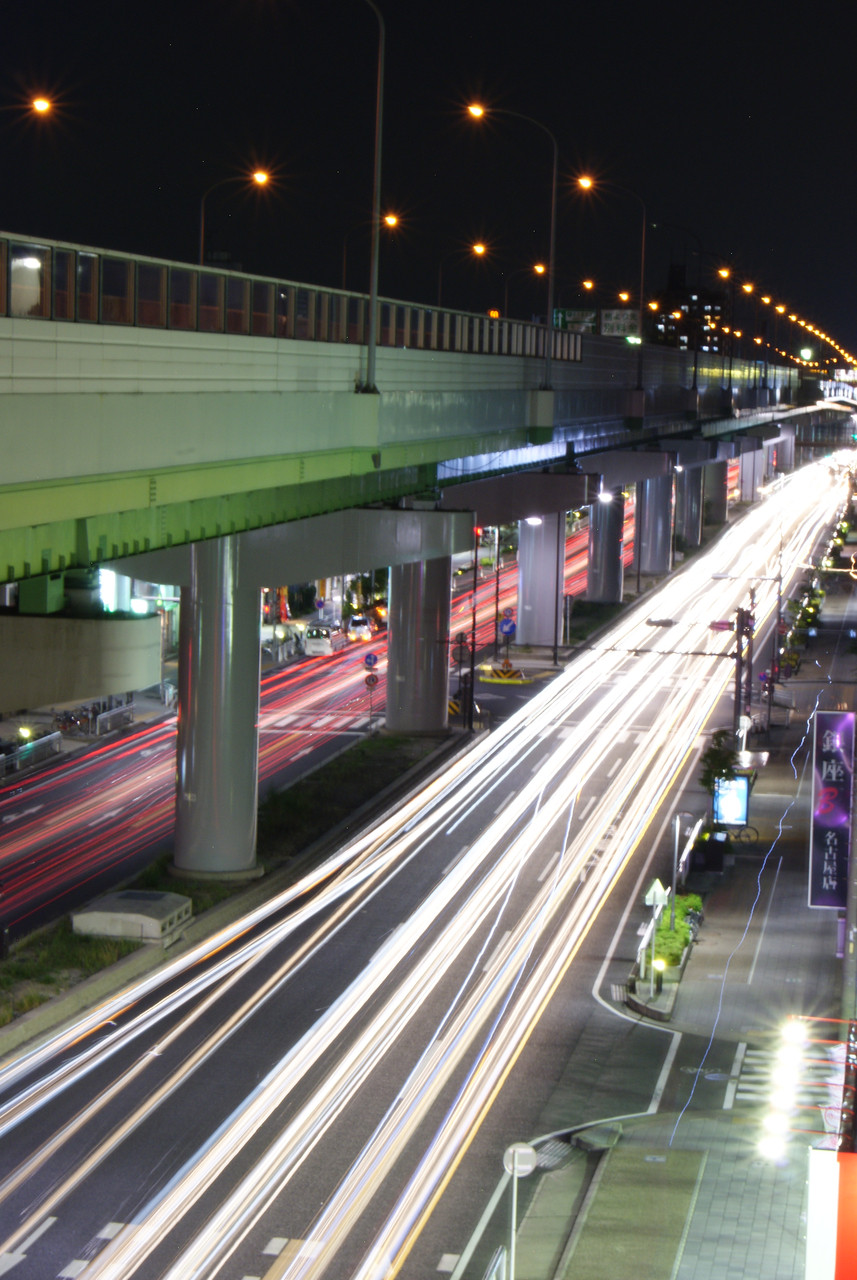 我が家のベランダから夜の道を撮りました。