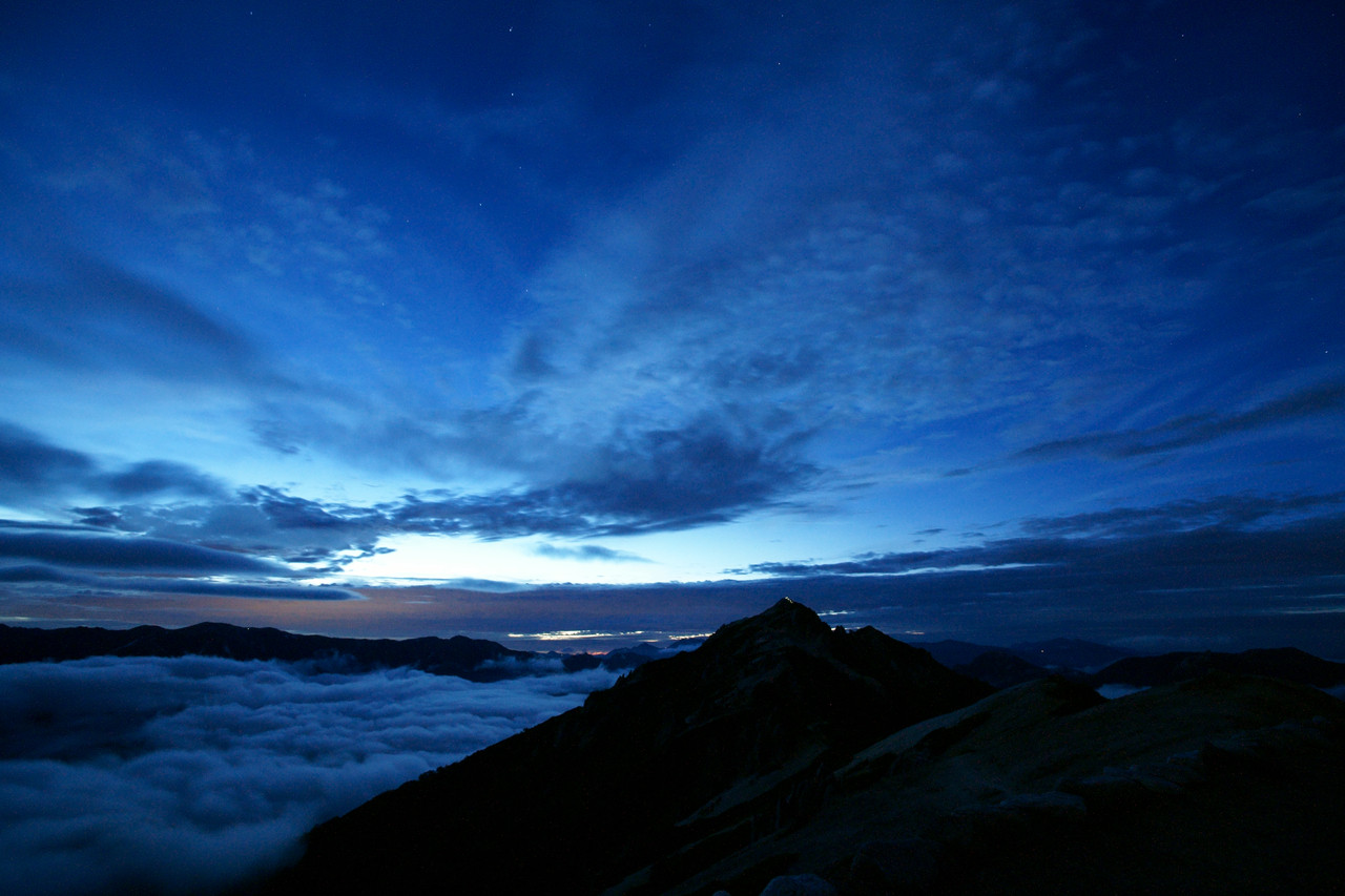 燕山荘から日没直後の燕岳方面を写しました。 夕方までの雨がまるで嘘のように晴れわたりました。