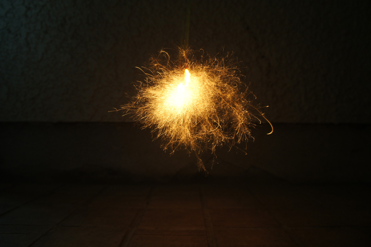 線香花火②(風で舞う火の粉)
