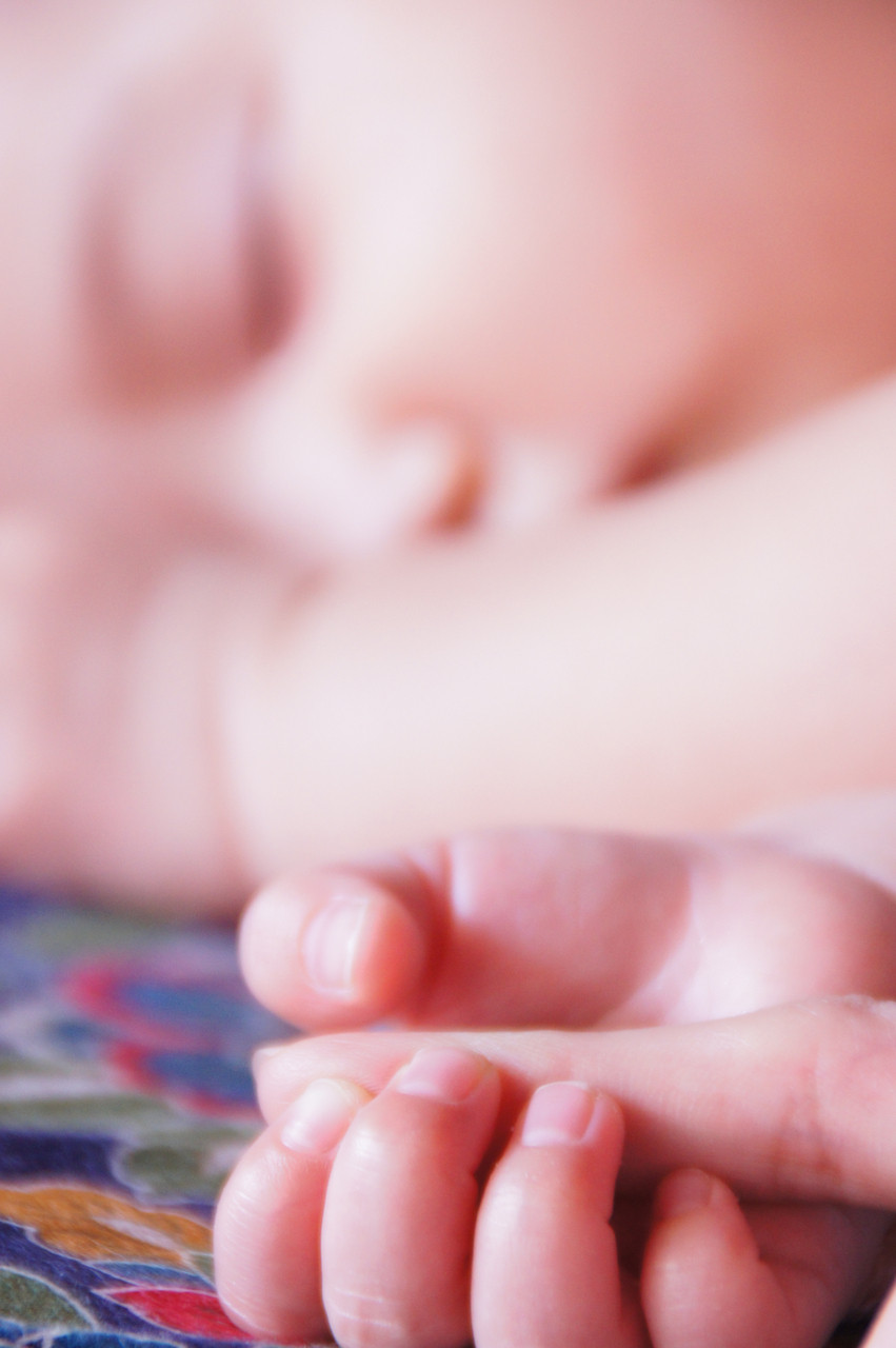 ママの存在は特別なんですね。 起きている時も寝てるときも・・・ って若干写真撮るためにママの手をずらしました。 幸せそうな写真を残せたので堪忍を。。