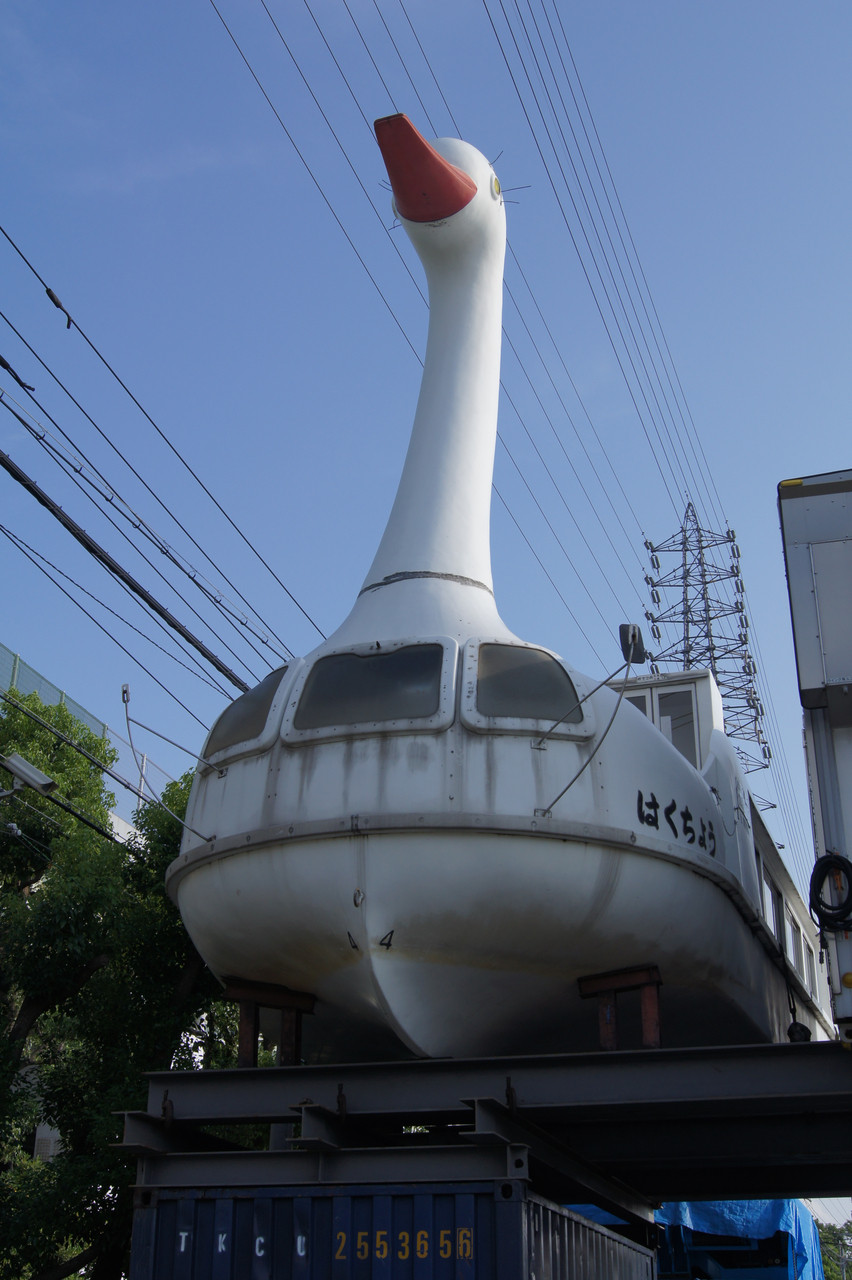 こんなところで白樺湖の白鳥を見つけました。 (関西電力堺火力発電所の近くです。タービンが破損した発電所です。)