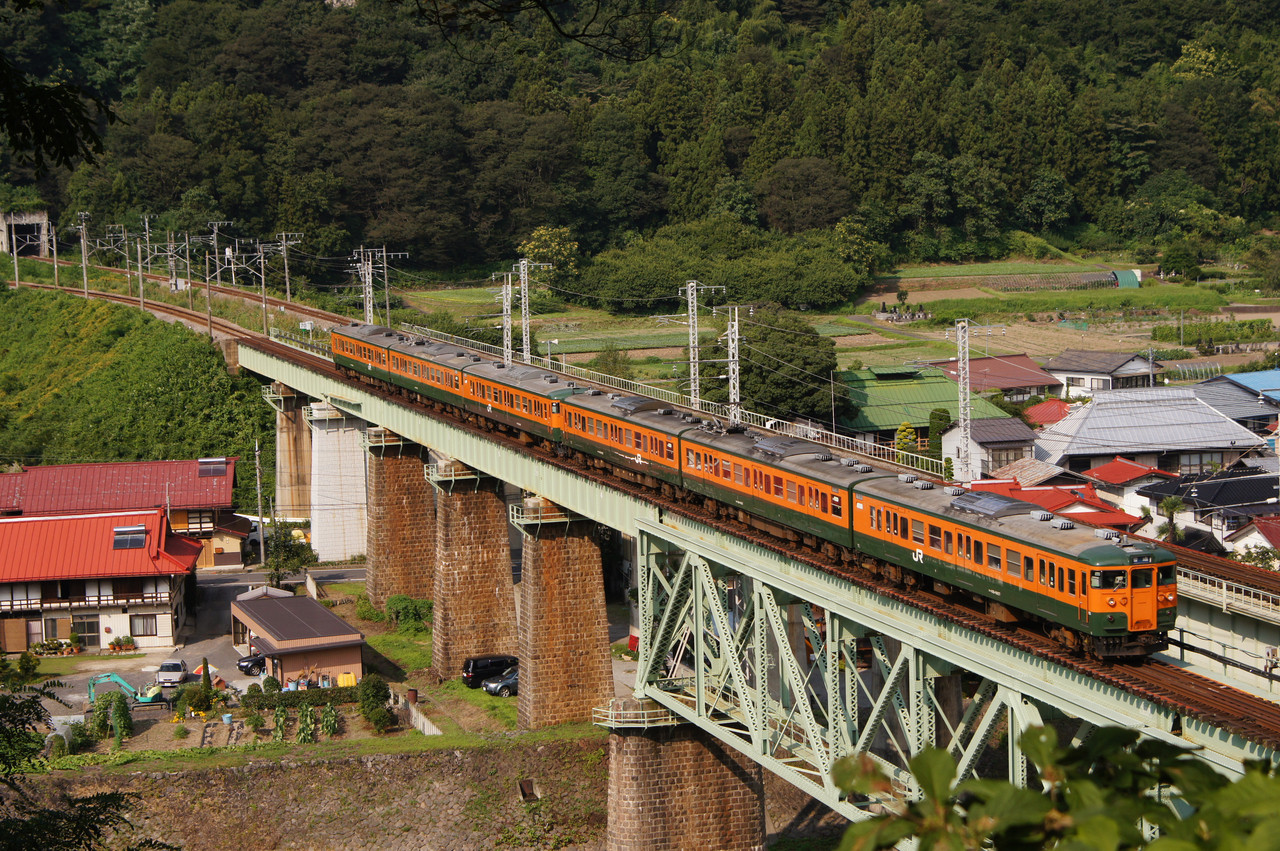 平凡な普通列車ですが、この塗装のは山間部の風景に良く溶け込むと 思います。 特に天気の良い日は周りの緑にオレンジ色が映えて気に入ってます。