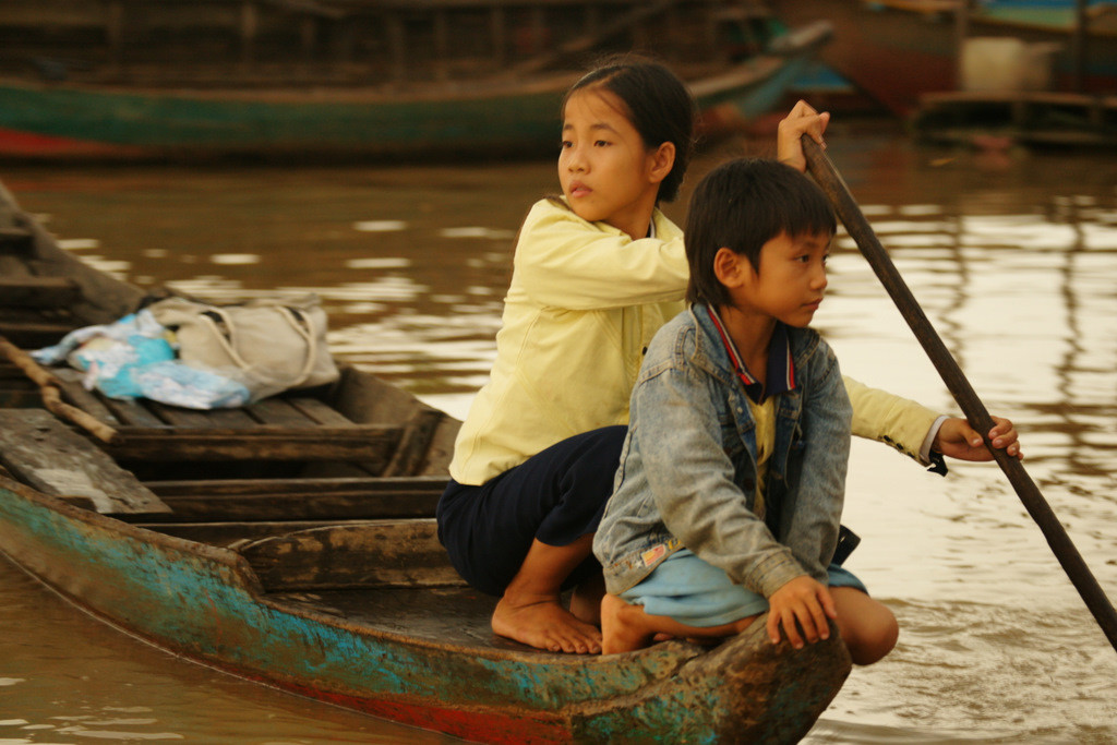 カンボジアはアンコール遺跡群の側に、Water Villageと呼ばれる水上生活者の集落があります。湖の上に家を建てて住んでおり、船を使って移動しています。学校に行ける子供も多くないので、ある程度の年齢になれば子供でも一家の生計を支える立派なオトナです。