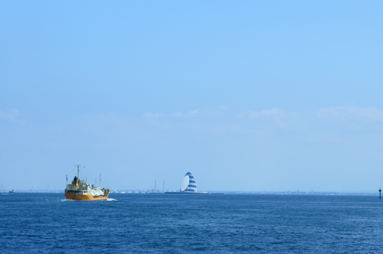 川崎の工業エリアから出航していくタンカー(?)です。