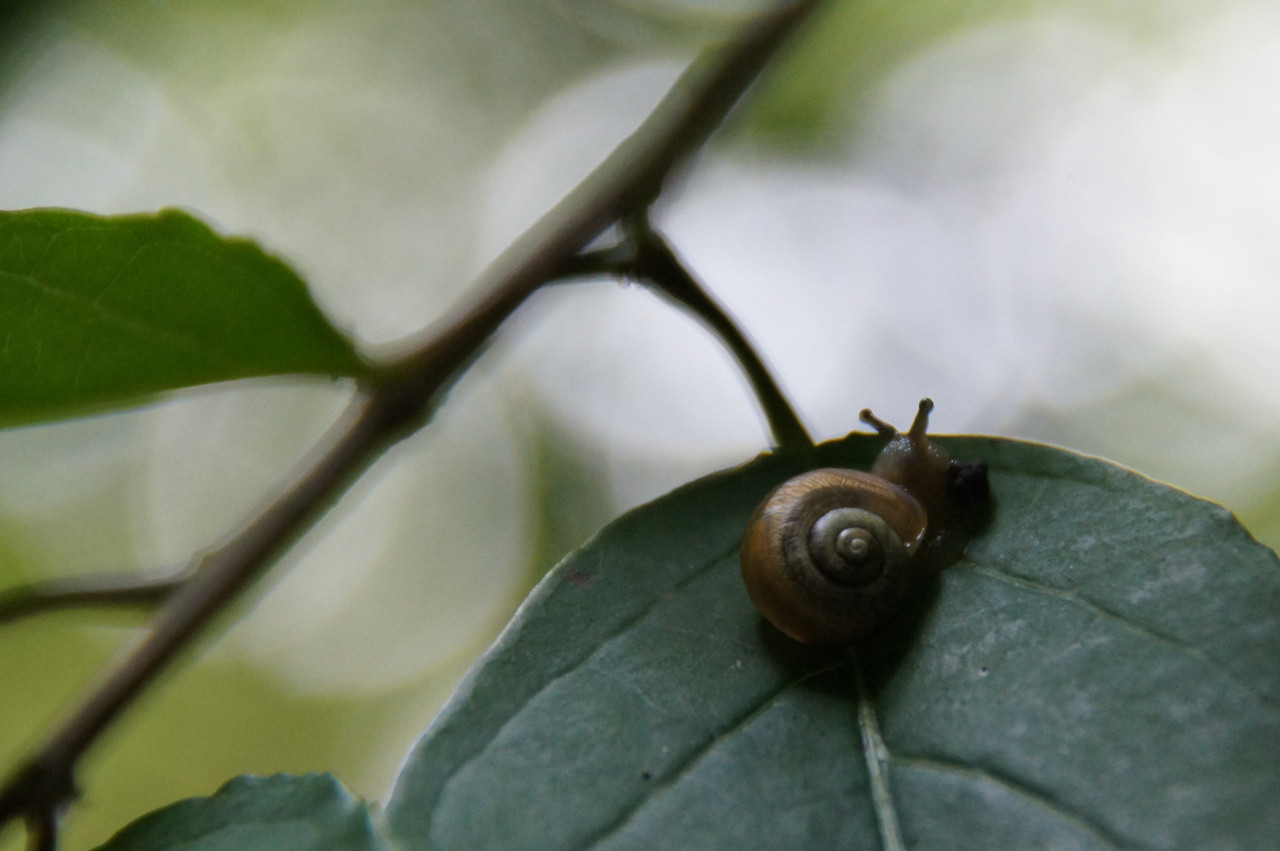 昨日は豪雨でしたが今日は天気よく、山に登ったらかたつむりが元気よく目玉をだしてました。