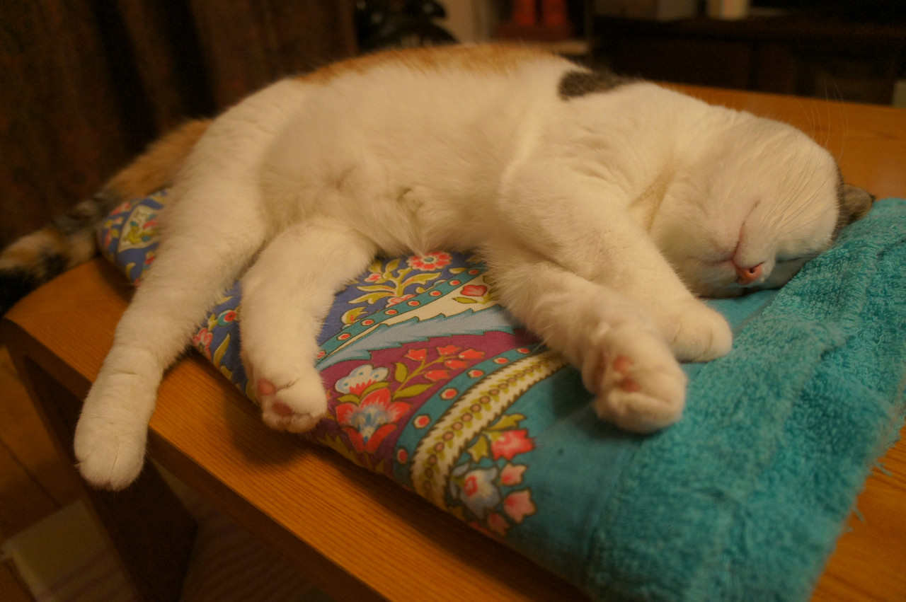 洗ってたたんでおいたブランケッドの上でいつの間にやら・・・。
