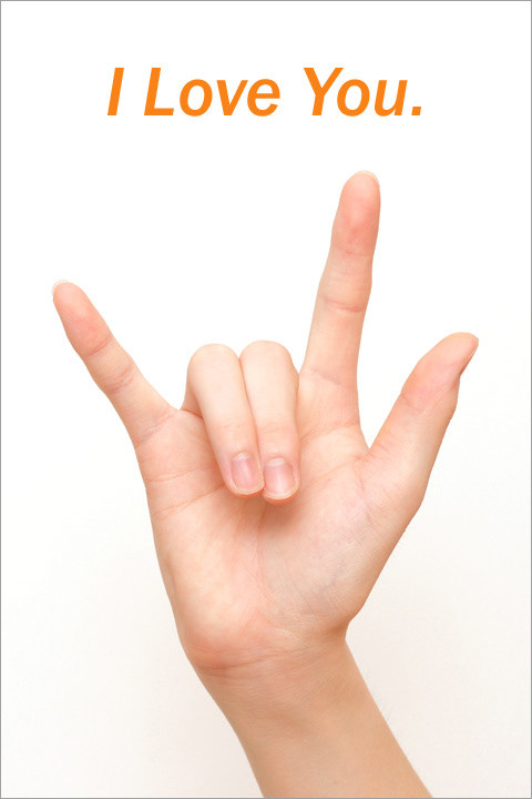 国際手話のI Love Youです。 小指のI、人差し指と親指のL、人差し指と小指のYが合わさったものです。