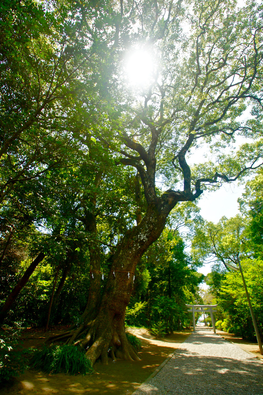 残暑厳しい日差しの中で 御神木の森に癒されまもられました! 御神木が強く息づいている様に感じられました。