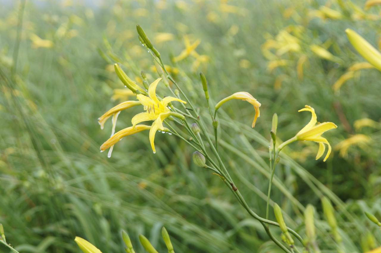 阿蘇山麓、しっとりと雨に濡れたユウスゲもなかなか小粋な風情でした。