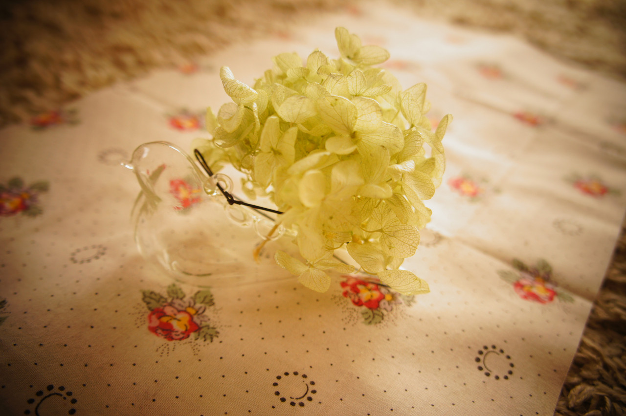 アジサイのドライフラワーです。 とりに、乗せてみました(^^) …お気に入りのトイカメラモードで。