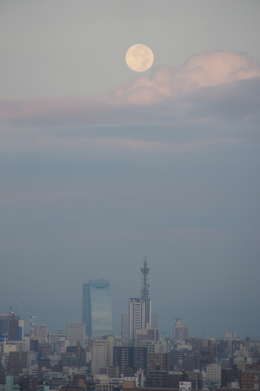 早朝の沈み行く中秋の名月