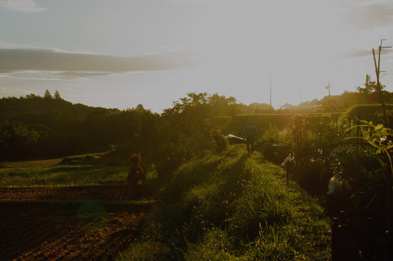 このあぜを歩いているおじいちゃんが 「ちょっと待ってって」と言って何か 取りに行った時の一枚です。 その後、白いかぼちゃをもらいました 絵画風に加工してみました。